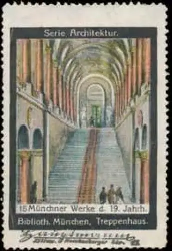 Treppenhaus, Serie Architektur, 15 Münchner Werke des 19. Jahrhunderts, Größe/Zustand: 6x4 , leicht beschädigt, Original alte Reklamemarke die seinerzeit für die Werbung benutzt wurde