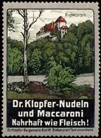 Dr. Klopfer-Nudeln und Maccaroni, Burgenserie Bild 18, Größe/Zustand: 5x4 , guter Zustand, Original alte Reklamemarke die seinerzeit für die Werbung benutzt wurde