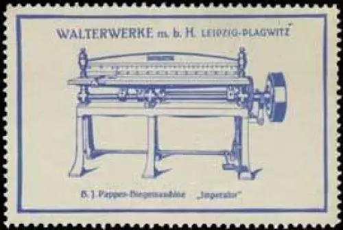 B.J. Pappen-Biegemaschine Imperator, Größe/Zustand: 4x6 , guter Zustand, Original alte Reklamemarke die seinerzeit für die Werbung benutzt wurde