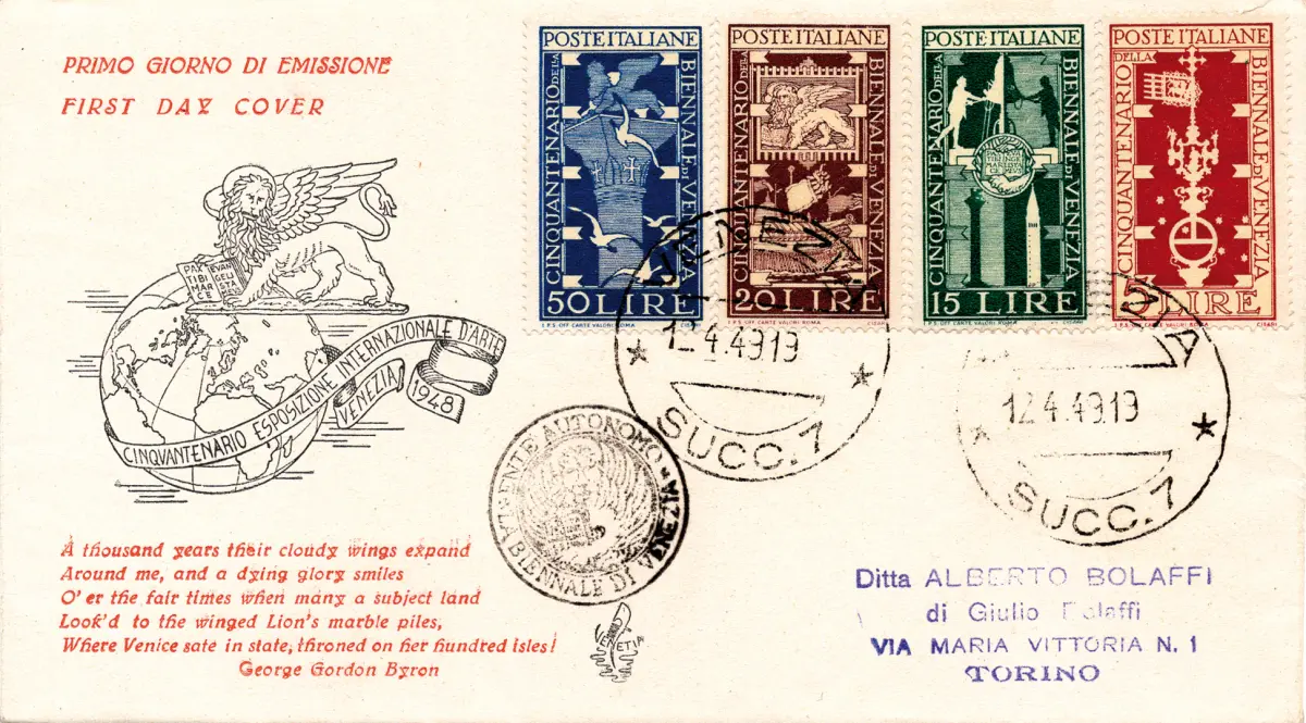 BUSTA - Biennale di Venezia Nr. 594/597 Serie auf Umschlag für Turin, ohne Ann. Ankunft - Uncommon Cod.481/182