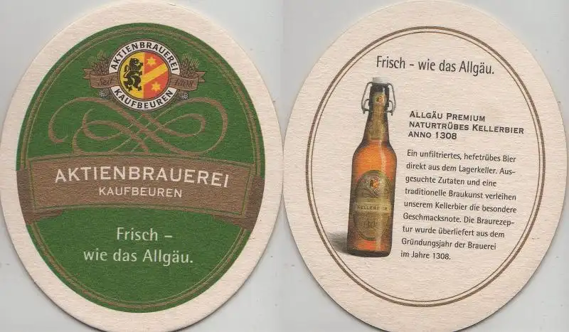 Bierdeckel oval - Aktien-Brauerei, Kaufbeuren