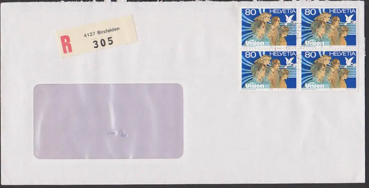 Biersfelden Helvetia 80 Rp(4) PTT UNION 1891-1991, R-Brief