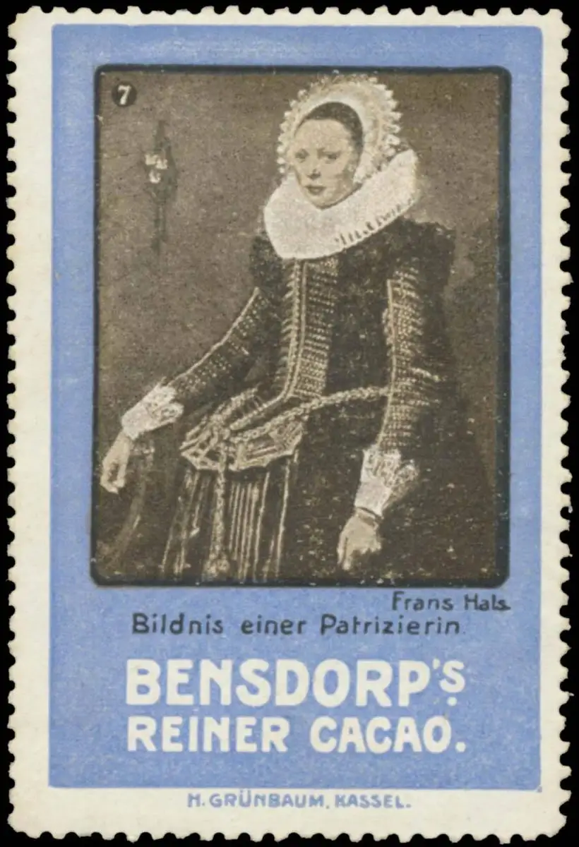 Bensdorps reiner Kakao, Künstler Serie, Amsterdam, Hamburg, Druckerei: H. Grünbaum, Kassel, Größe/Zustand: 6x4 , guter Zustand, Original alte Reklamemarke die seinerzeit für die Werbung benutzt wurde