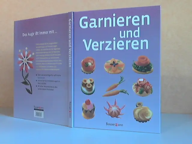 das Buch ist altersbedingt in einem gutem, gebrauchten Zustand, ... Die in diesem Buch vorgestellten Garnierungen und Verzierungen helfen, die Gerichte für die täglichen Mahlzeiten ebenso wie für festliche oder sonstige Anlässe durch fantasievolle Dekorationen zu verschönern. Die Anwendungsbeispiele reichen von Gemüse, Eiern und Pilzen über Früchte und Süßspeisen zu Cremes und Glasuren für Torten und Backwaren. Über 200 Vorschläge für raffinierte Garnituren - Schritt-für-Schritt-Erklärungen In Text und Bild - Mit einer Warenkunde zu den verwendeten Produkten. ... (vom Einbandrücken) Beschreibung vom Antiquariat Ardelt 4p3a ISBN-Nummer: 3809418948 Antiquariat Ardelt