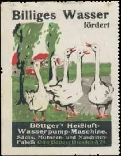 fördert Böttgers Heißluft-Wasserpump-Maschine, Geflügel, Größe/Zustand: 6x5 , beschädigt, Original alte Reklamemarke die seinerzeit für die Werbung benutzt wurde