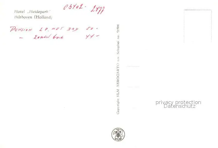 Bilthoven Hotel Heidepark Fliegeraufnahme Bilthoven postalisch nicht gelaufen 1921-1965 Erhaltung siehe scans [WerneD78] WernPID7