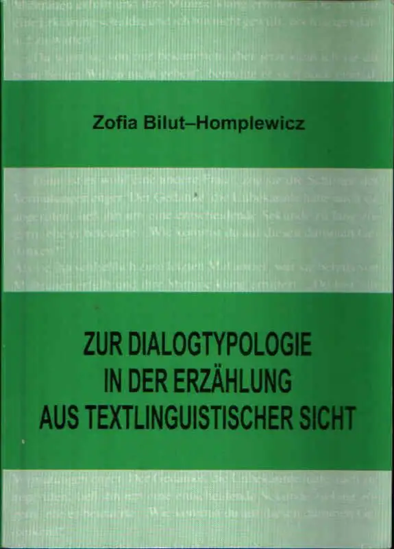 Zur Dialogtypologie in der Erzählung aus Textlinguistischer Sicht; Linguistische Dialogforschung; Tendenz; Entwicklung; Dialog vs. Text; Literarischer Dialog vs. natürlicher Dialog; Literarischer Dialog als Untersuchungsgegenstand der Textlinguistik; Dialogtypen; Zofia Bilut-Homplewicz; Sprache; Sprachwissenschaft