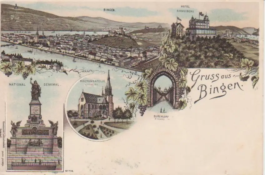 Bingen a.R. Litho Kapelle Burg Panorama ngl 94.859