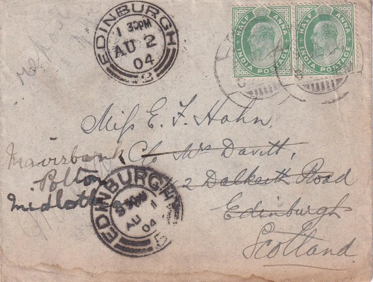INDIEN KEVII 1/2 a BRIEFUMSCHLAG TAUNGUP/ BURMA nach Edinburgh