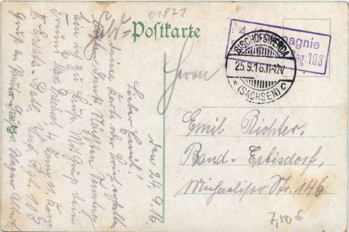 Bischofswerda in Sachsen - Bad - Feldpost Infanterie Regiment 103 -478778