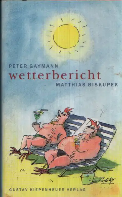 Biskupek, Matthias; Wetterbericht; Mit 22 Illustrationen von Peter Gaymann; Göttliches Wetter; Wintergewitter; Märzenschnee; Wasserhose; Das Azorenhoch; Siebenschläfer; Wolkenbruch; Hundstage; Die Gewitterziege; Der Platzregen; Bodenfrost; Die Wetterküche; Pulverschnee; Geschichten; Erzählungen