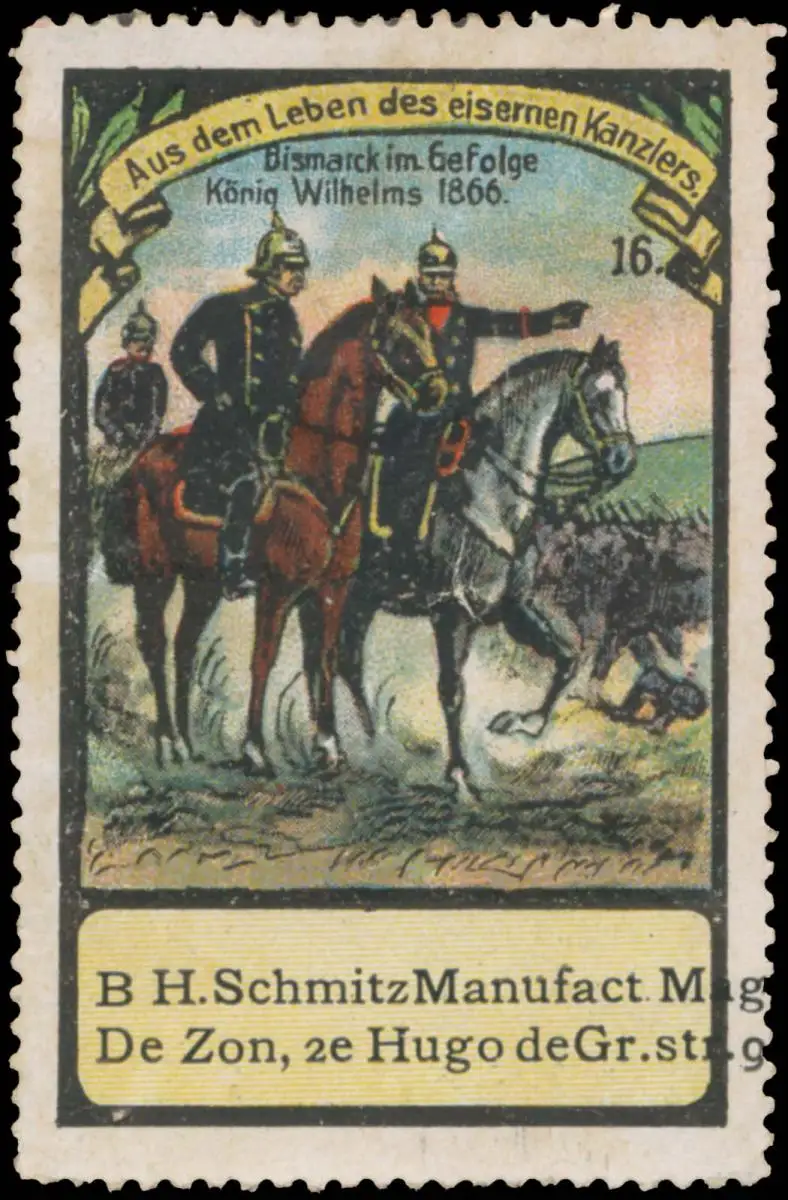 Aus dem Leben des eisernen Kanzlers, Nr. 16, Niederlande, Größe/Zustand: 6x4 , guter Zustand, Original alte Reklamemarke die seinerzeit für die Werbung benutzt wurde
