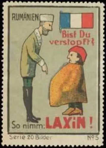 So nimm Laxin. Rumänien, Flaggen-Serie, Apotheke, Größe/Zustand: 6x4 , leicht fleckig, Original alte Reklamemarke die seinerzeit für die Werbung benutzt wurde