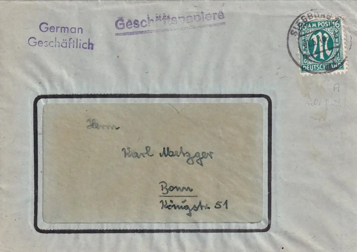 Bizone, AM Post Fernbrief mit EF. Mi.-Nr. 25 A. sign. HettlerBPP