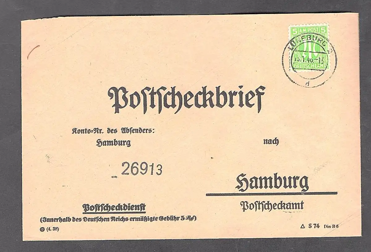 Bizone, AM Post, Postscheckbrief mit EF: Mi.-Nr. 19 D, sign. HettlerBPP