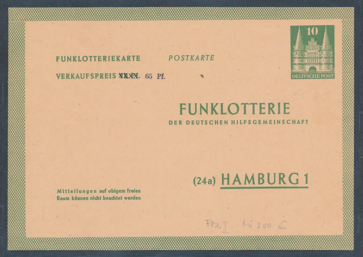 Bizone, Ganzsache Mi.-Nr. FP. 2 I a ungebraucht