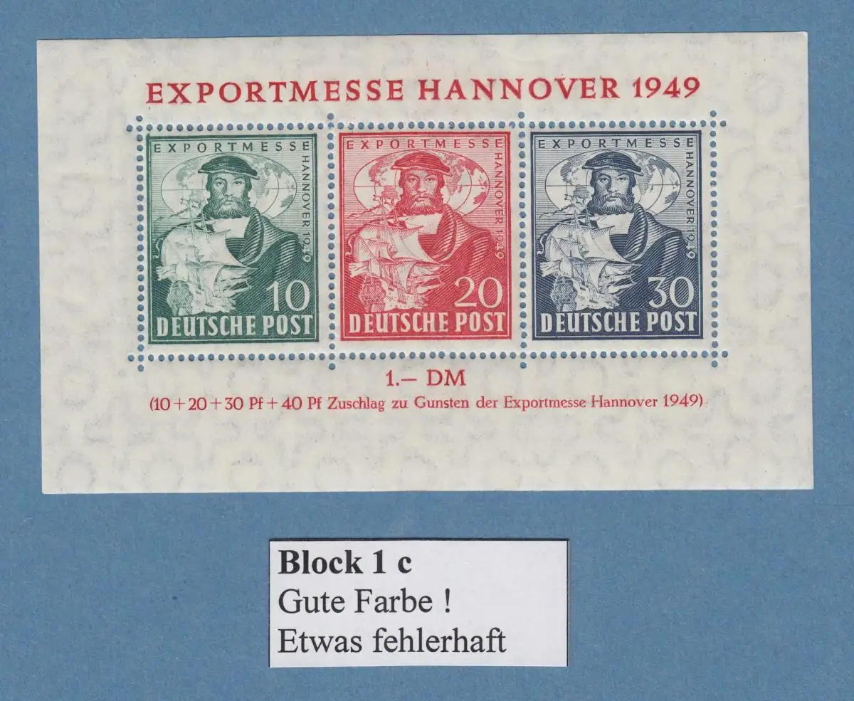 Bizone Hannover-Messe Block in seltener c-Farbe Mi.-Nr. Block 1 c ** ANSEHEN !