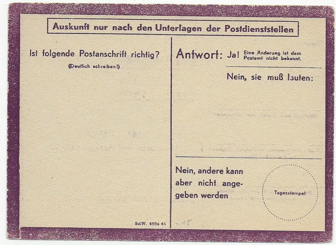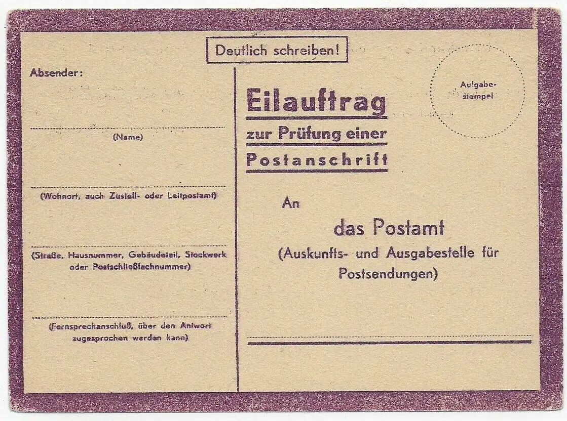 Blanko: Eilauftrag zur Prüfung einer Postanschrift
