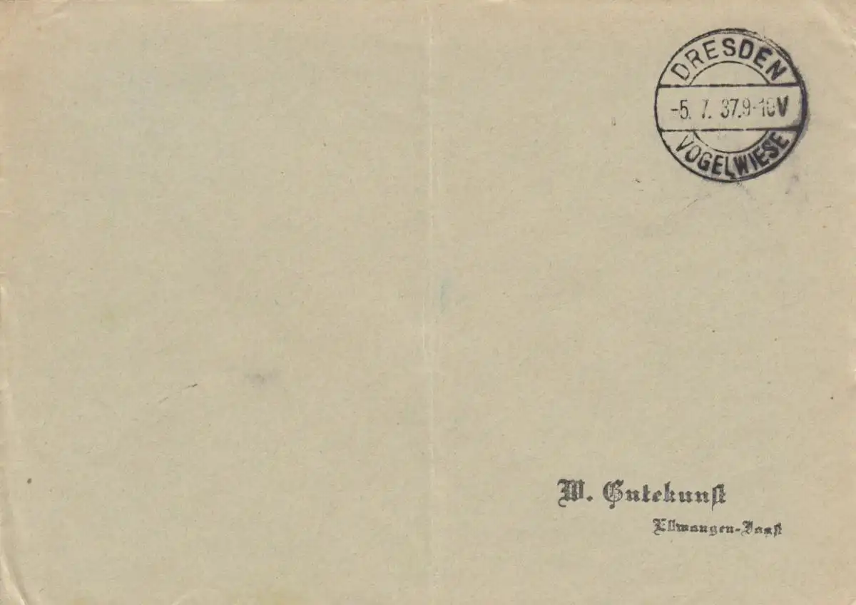 Blanko Kuvert 1937: Dresden Vogelwiese