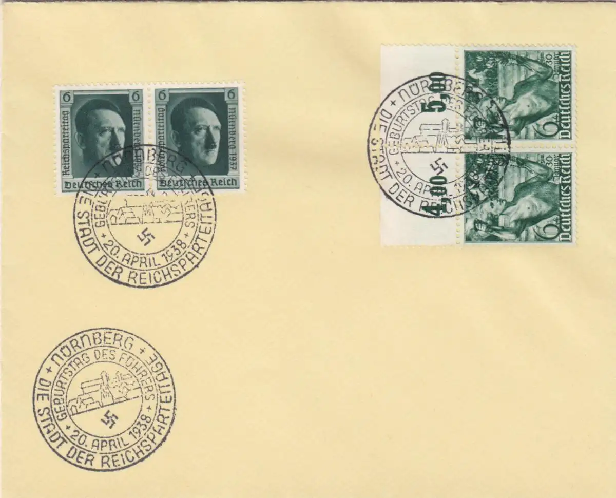 Blanko Sonderstempelbeleg 1938: Nürnberg: Geburtstag des Führeres 20. April 1938