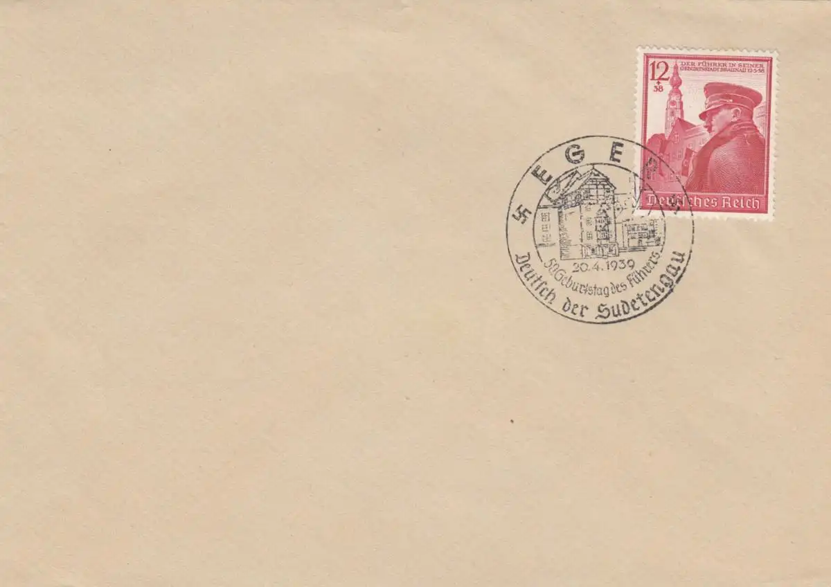 Blanko Sonderstempelbeleg 1939: Eger: 50. Geburtstag des Führers