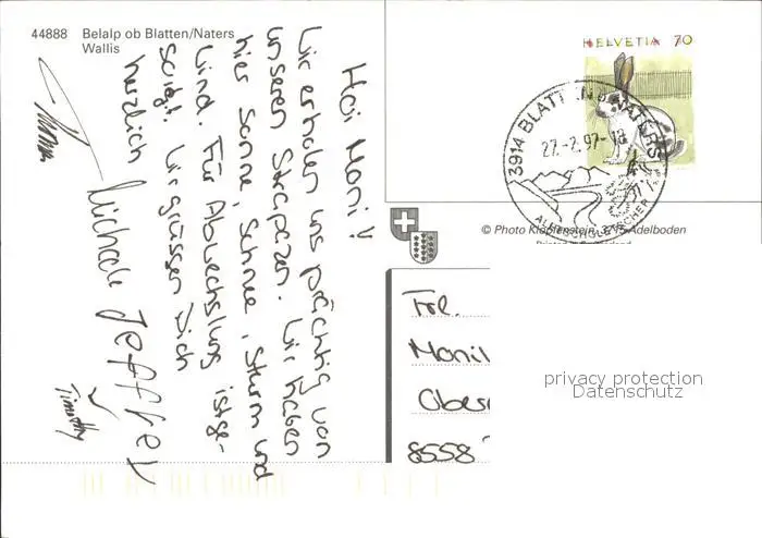 Blatten VS mit Belalp Blatten VS postalisch gelaufen 1997 Erhaltung siehe scans Alte Ansichtskarte Postkarte hz Woerer