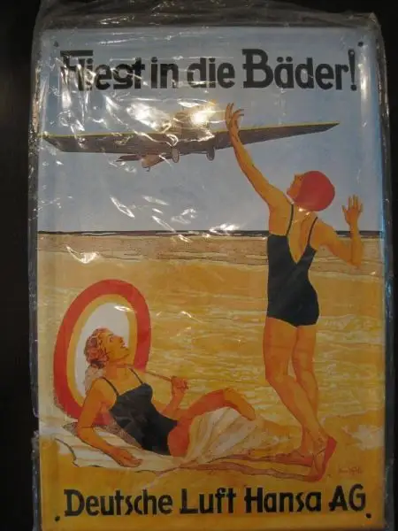 Blechschild mit Lufthansa- Reklame, ca. DIN A4-Format