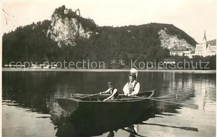Bled Bleder See Ruderboot Trachten Kirche Burg Bled postalisch nicht gelaufen 1921-1965 Erhaltung siehe scans [WerneD78] WernPID7