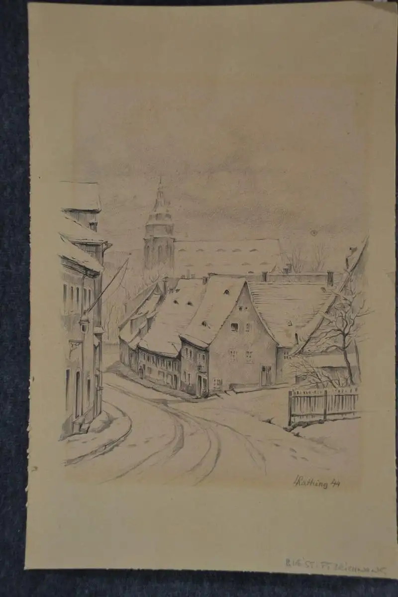 Bleistiftzeichnung, Dorf, Rathing 1944ca. 16 x 23 cm