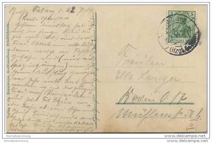 Blick nach dem Inselberg - Verlag Georg Krautwurst Friedrichroda (E11028) gel. 1914