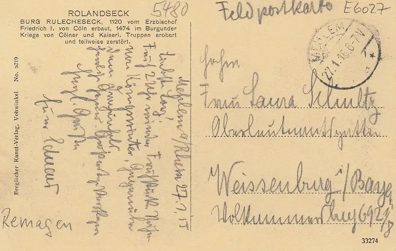 Blick vov Rolandseck auf das Siebengebirge feldpgl1915 E6027