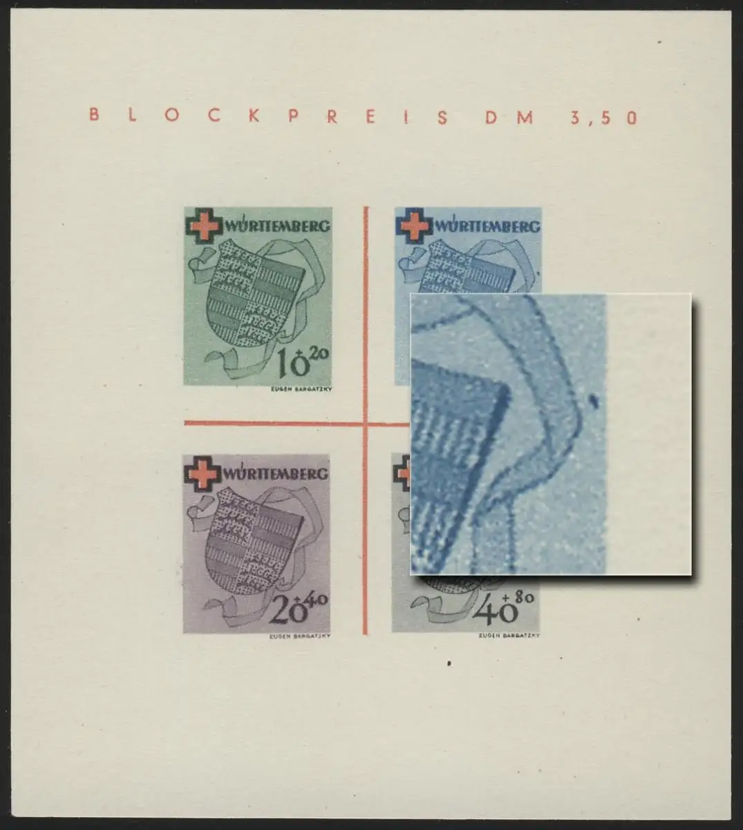 Block 1 Württemberg Rotes Kreuz Type V (*) original wie verausgabt