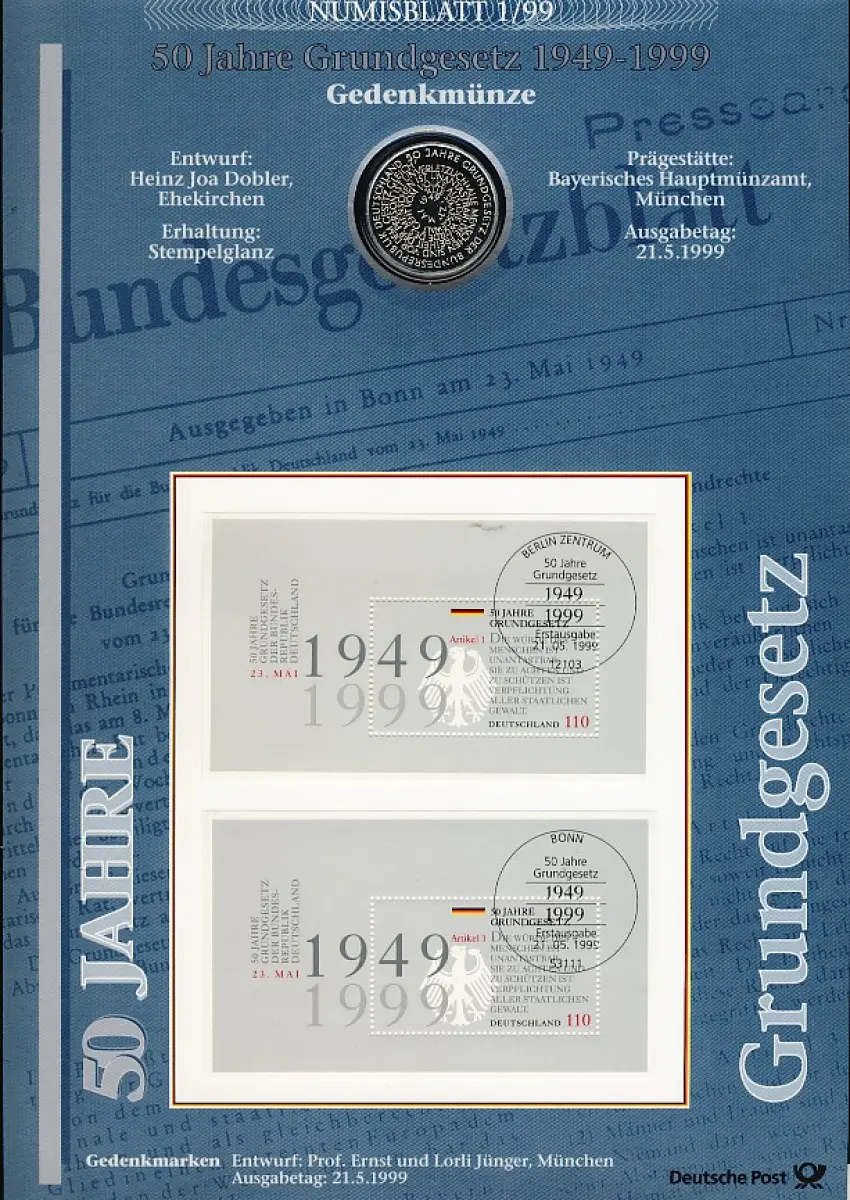 Block 48 Jubiläum 50 Jahre Grundgesetz - Numisblatt 1/99