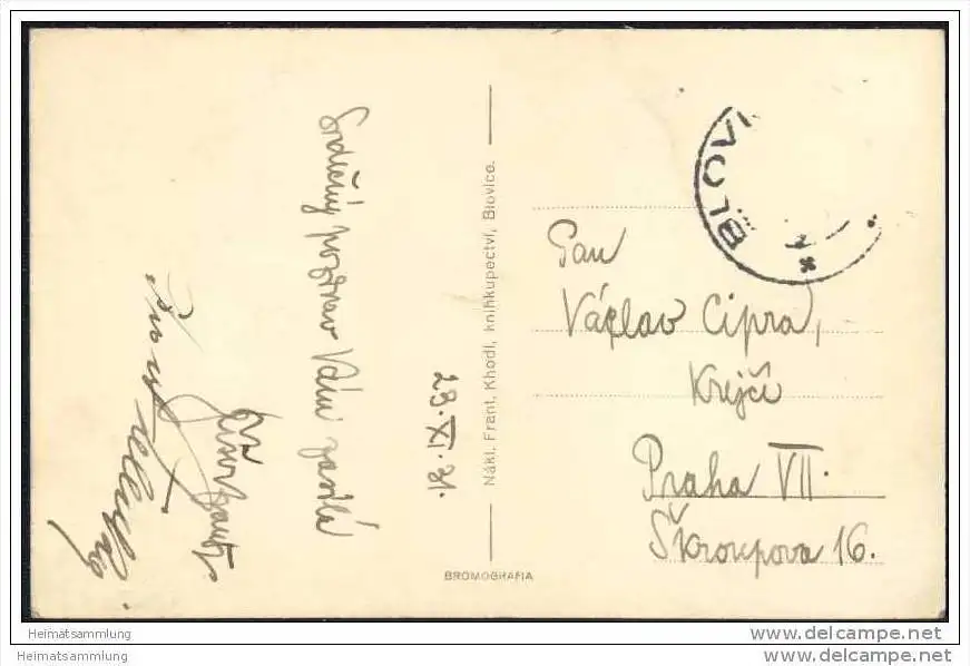Blovice u Kostela - Blowitz - Nakl. Frant. Khodl Blovice - Eckknick unten links - Briefmarke entfernt (E3931) gel. 1931