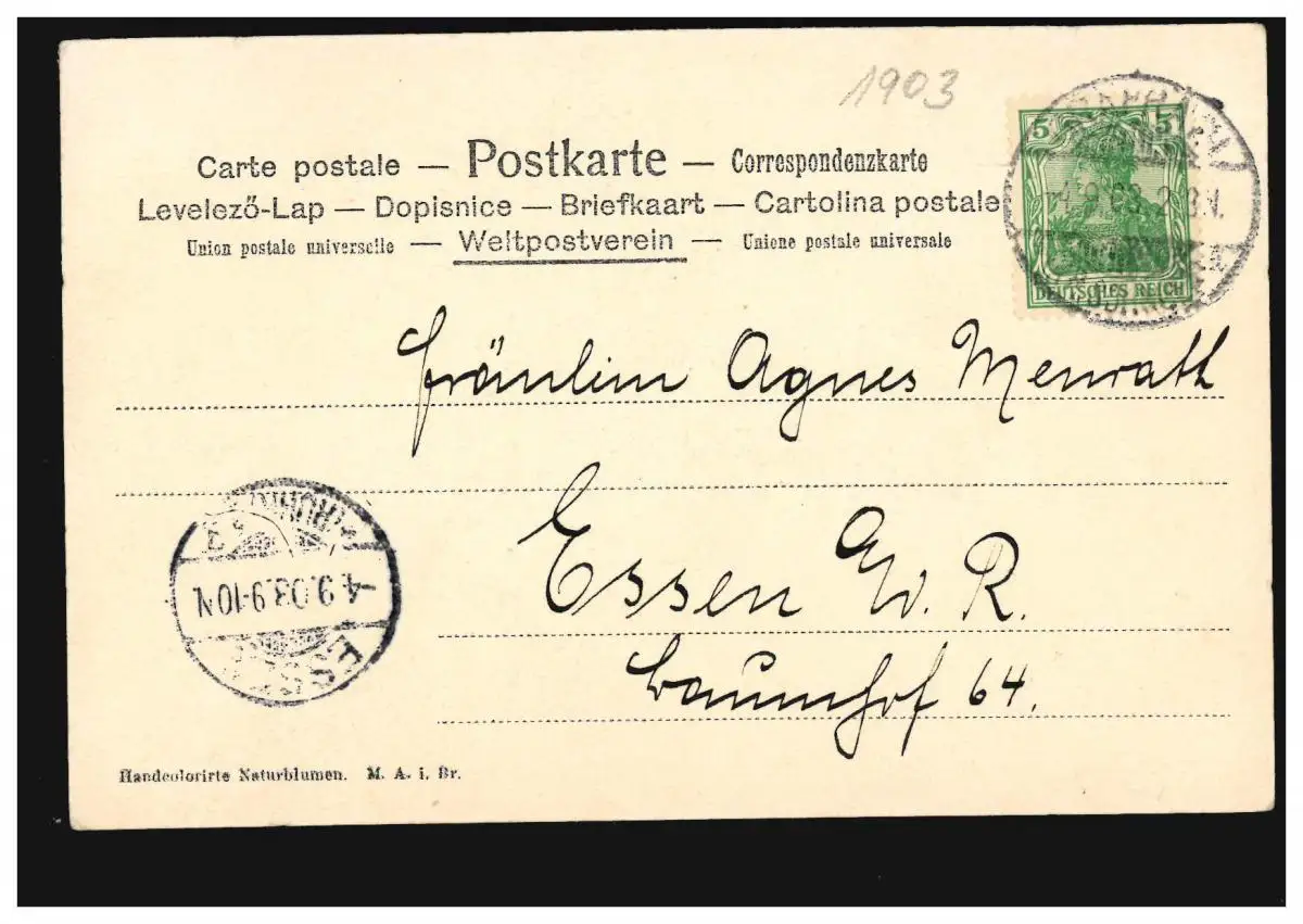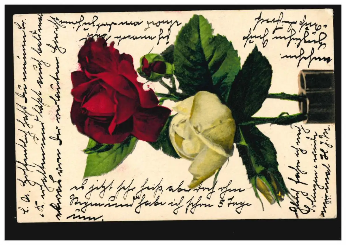 Blumen-AK Rote und Weiße Rose, GRAFRATH 4.9.1903 nach ESSEN 4.9.03