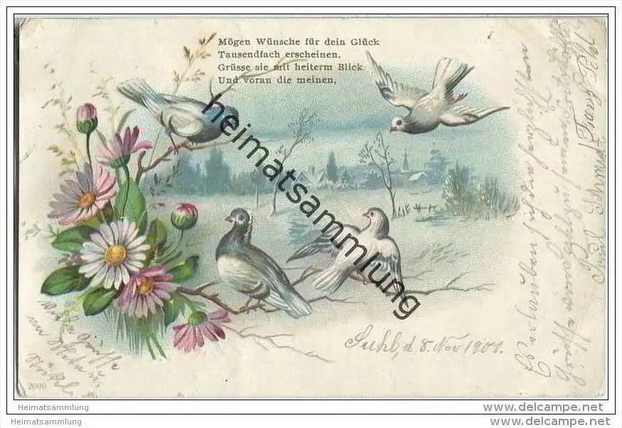Blumen - Gänseblümchen - Tauben - leichte Gebrauchsspuren (G24810) gel. 1901
