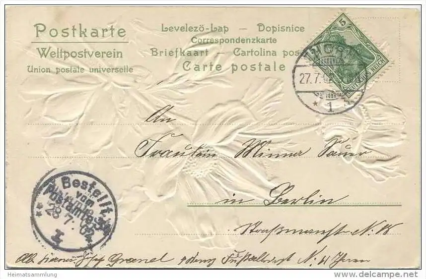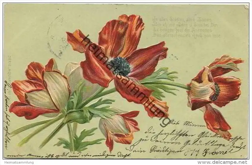 Blumen - Mohn - Prägedruck (E14885) gel. 1902