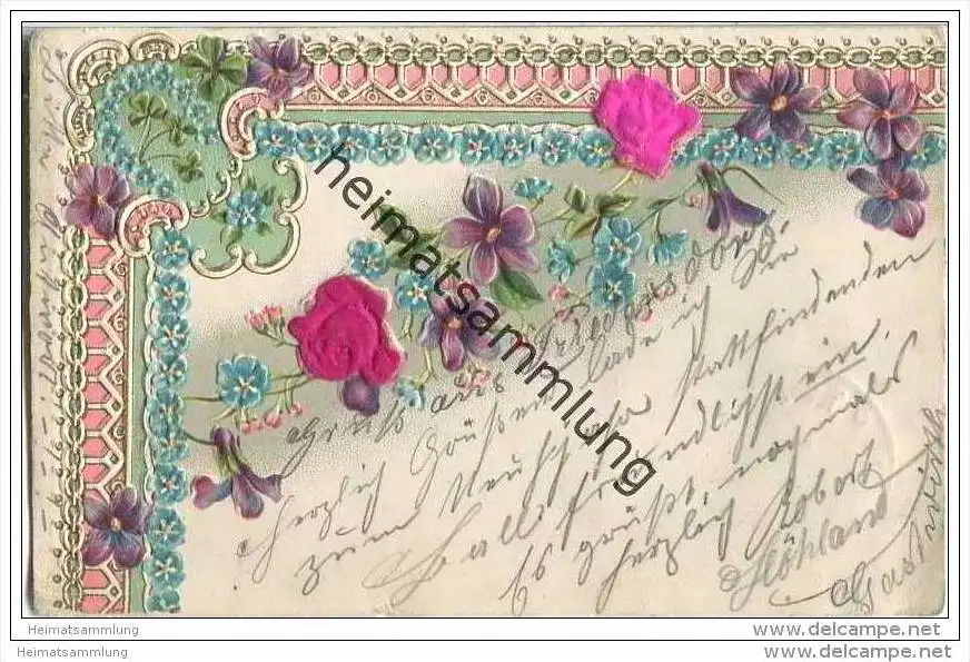 Blumen - Rosen - Prägedruck - leichte Gebrauchsspuren (G24809) gel. 1902
