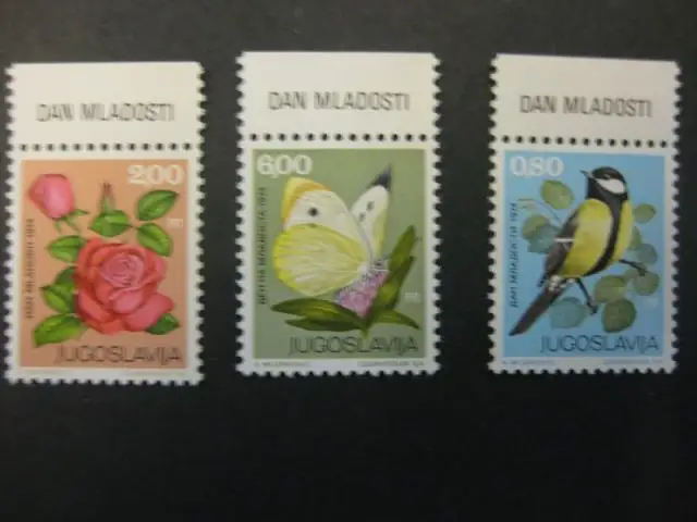 Blumen, Rosen, Schmetterling, Vögel, Jugoslawien, 3 Werte