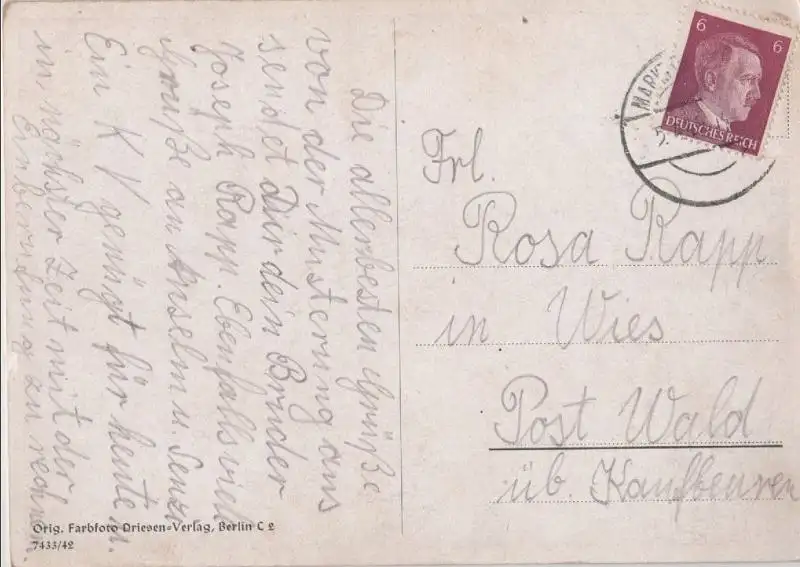 Bei dem angezeigten Bild handelt es sich um einen Original-Scan der angebotenen Ansichtskarte.