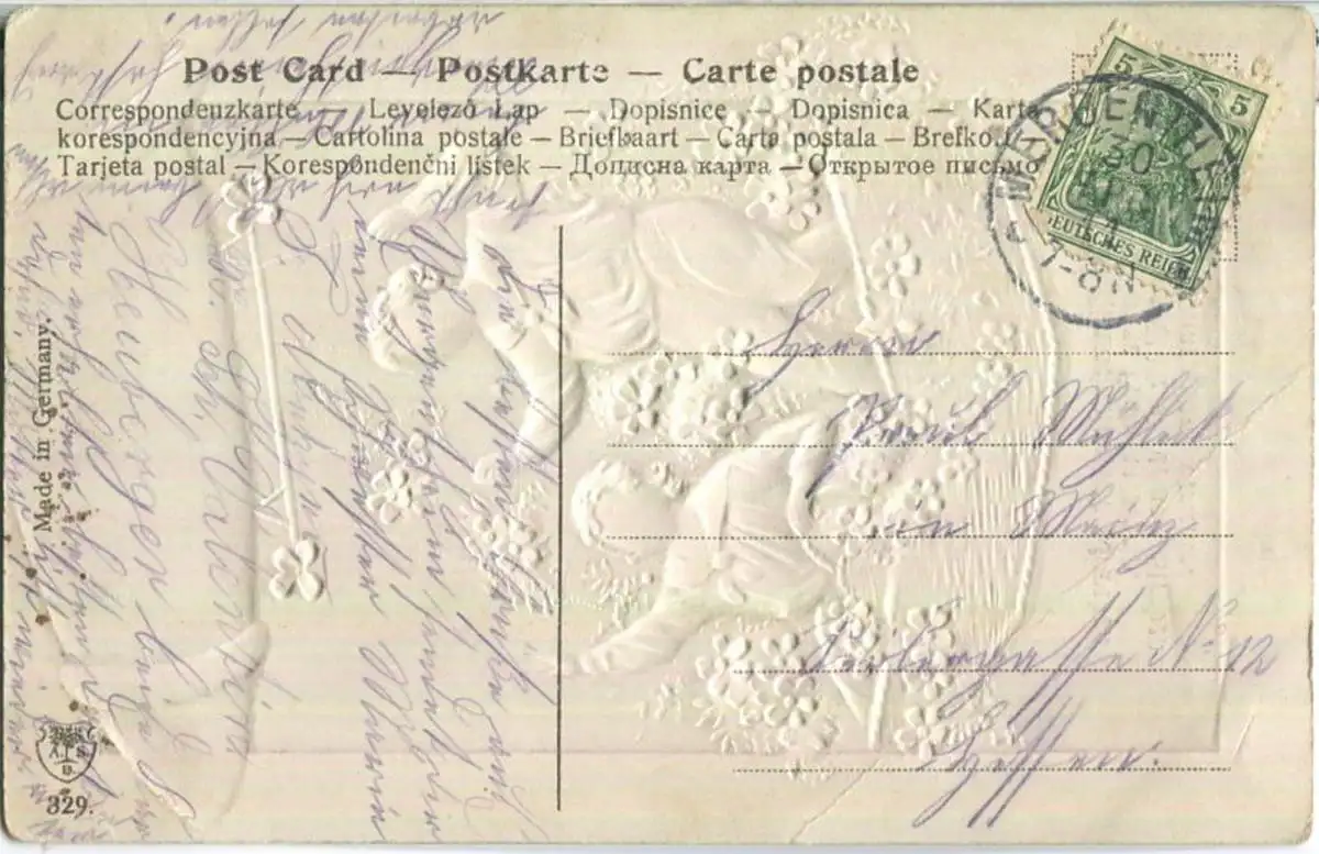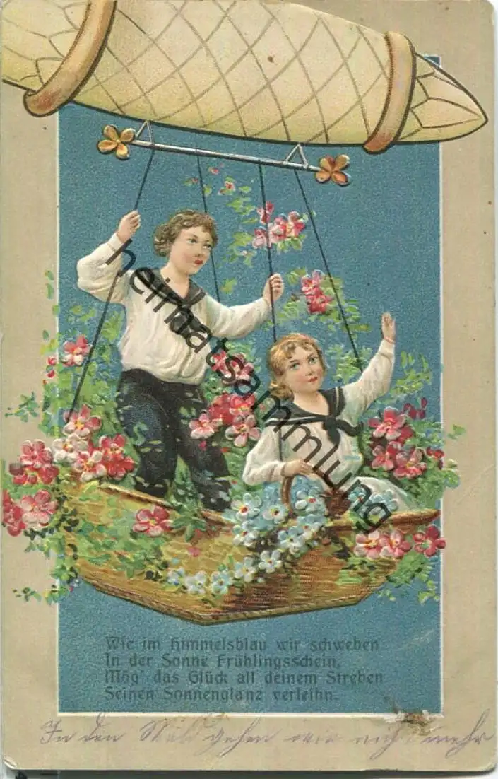 Blumengondel - Prägekarte - Gebrauchsspuren - Eckknick unten rechts (G12003) gel. 1911