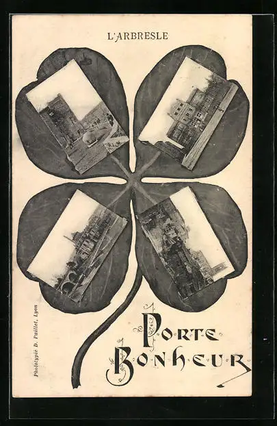 Blumengruss-AK L`Arbresle, Teilansichten auf Kleeblatt