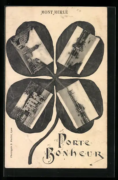 Blumengruss-AK Mont Merle, L`Eglise, Kleeblatt
