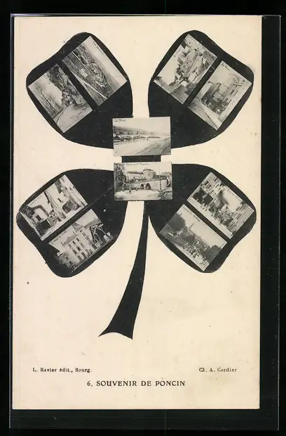 Blumengruss-AK Poncin, Le Pont, Kleeblatt