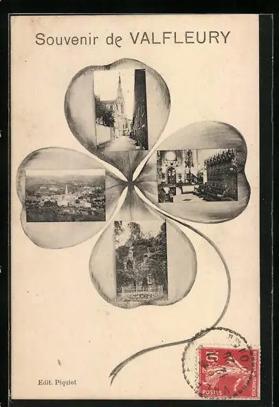 Blumengruss-AK Valfleury, L`Eglise, Vue générale