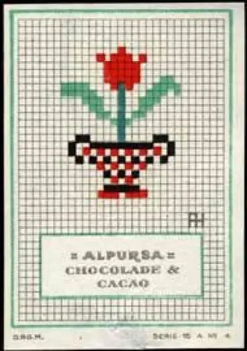Chocolade & Cacao, Serie Nr. 15, Bild 4, Stickmuster-Serie, Stickerei, Größe/Zustand: 7x5 , beschädigt, Original alte Reklamemarke die seinerzeit für die Werbung benutzt wurde