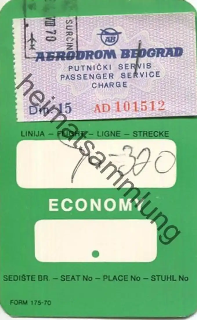 Boarding Pass - Aerodrom Beograd - Din 15 (G61546)