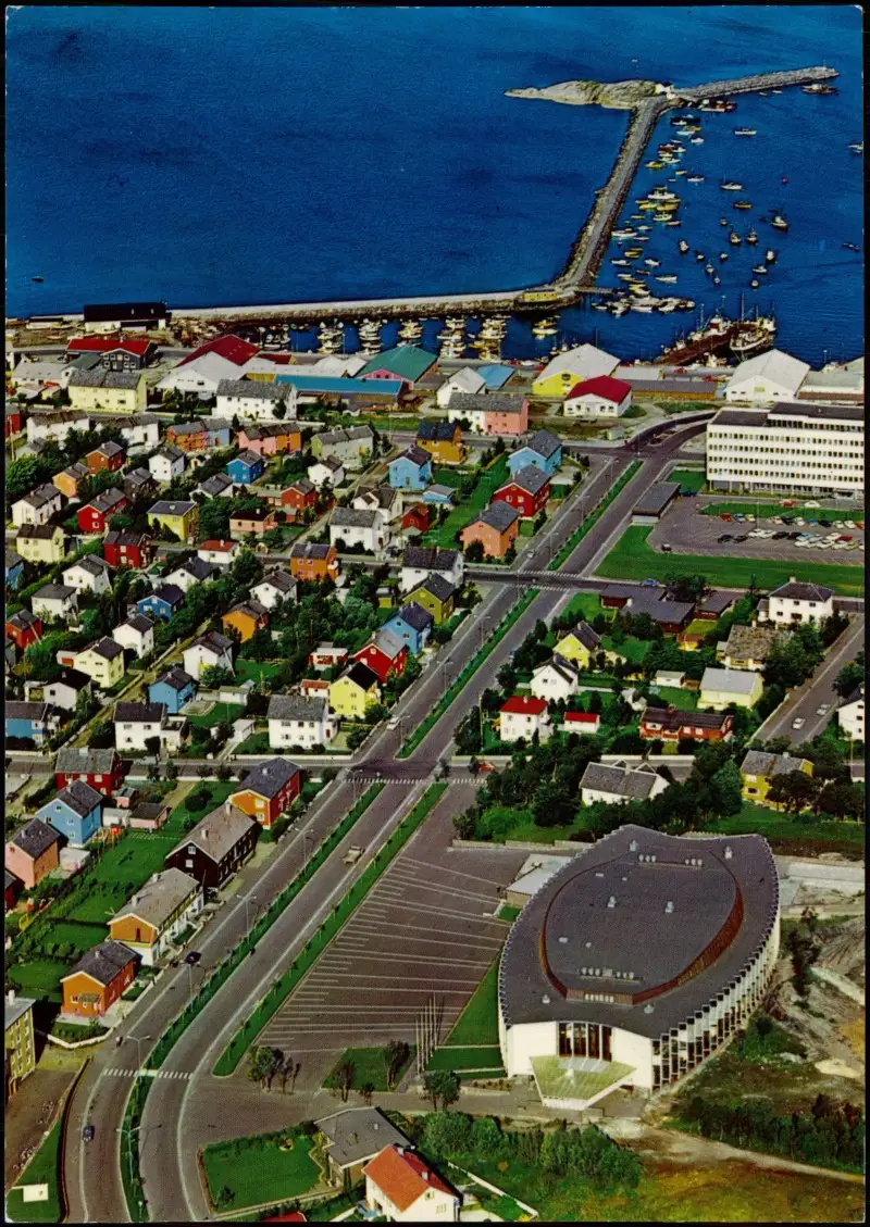 Bodø Luftaufnahme Bodø Parti fra byen med Aspåsen skole i forgrunnen 1980