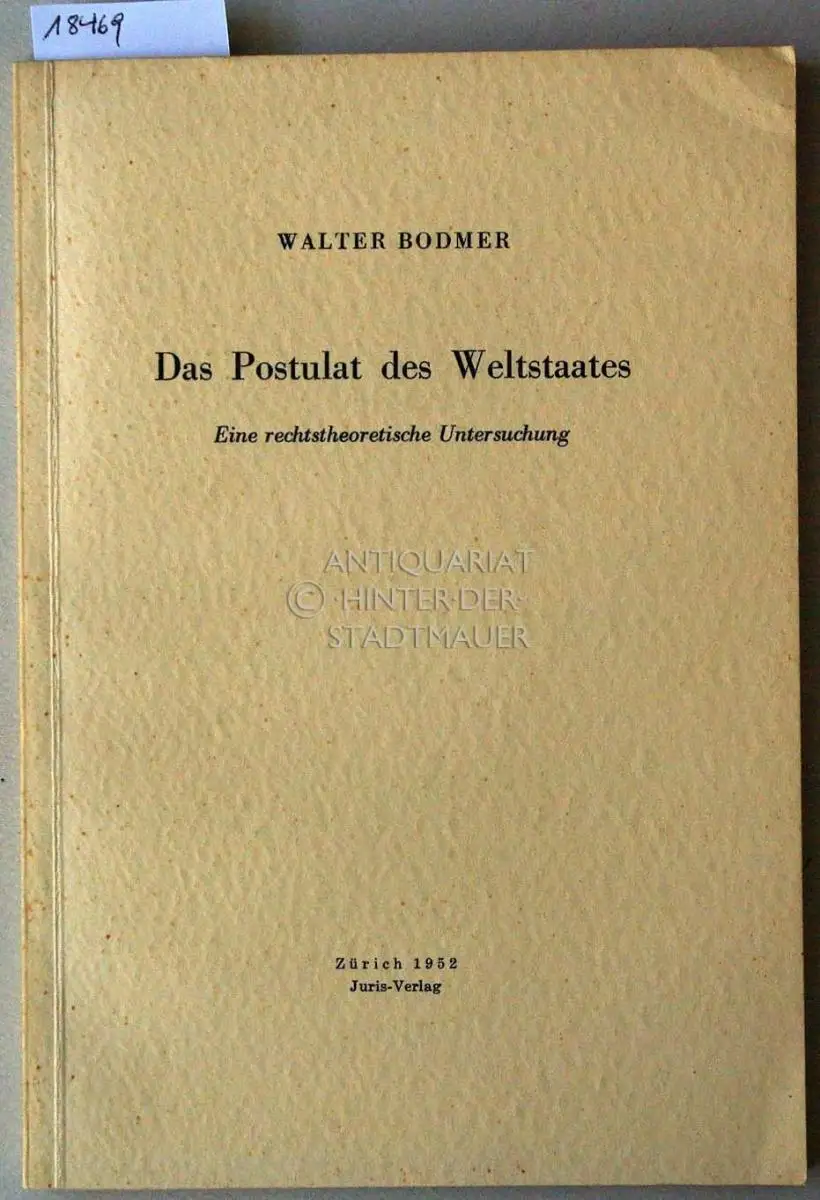 Bodmer, Walter: Das Postulat des Weltstaats. Eine rechtstheoretische Untersuchung.