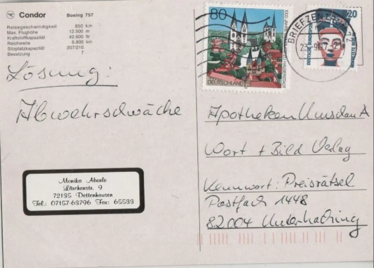 Ich hatte die Rechnung sofort als Vorkasse bezahlt, aber keine Zusendung der Karte erhalten. Trotz Nachfrage keine Rückmeldung bzw. Erklärung. Da es sich zum Glück nur um 1,70 € handelt, ist die Sache für mich erledigt, ärgerlich, aber zu verkraften. Mit den drei anderen Karten, die ich bestellt hatte, hat alles wunderbar geklappt.